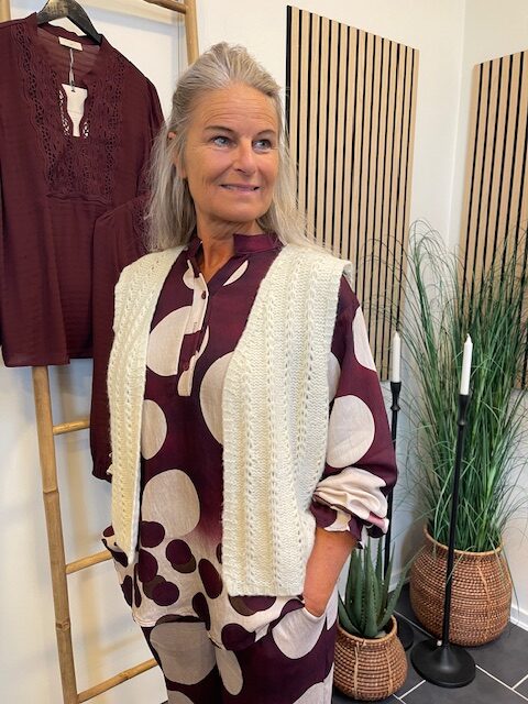 Moderigtig strik vest fra Nümph. Den er cool over dine kjoler, over en langærmet t-shirt og selvfølgelig over alle dine bluser.