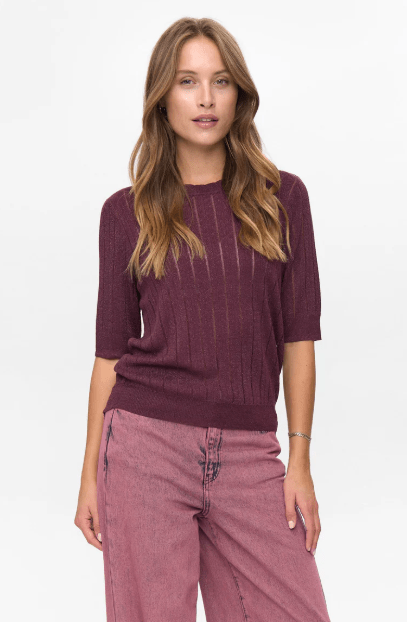 Skøn let pullover i bordeaux fra Nümph. Style den til både bukser og til nederdele.