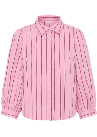 Skøn skjorte i lyserøde striber fra Part Two. Skjorten har 7/8 længde ærmer……altså ikke helt lange.