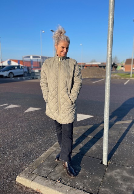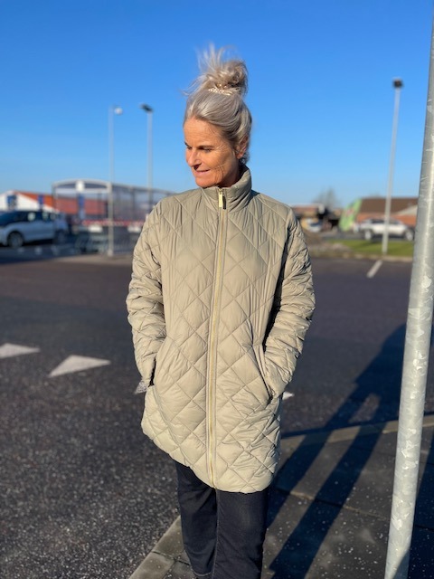 Skøn frakke i en let og luftig dun kvalitet, men som samtidig er dejlig varm. Farven er lys khakigrøn og her har du en frakke i mange år.