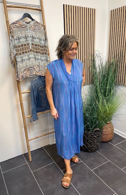 Smuk lang silke kjole i lilla/kobolt farvemix fra Peace Heart Joy. Så skal du til en fest i løbet af sommeren så er her et godt bud på en ny kjole.