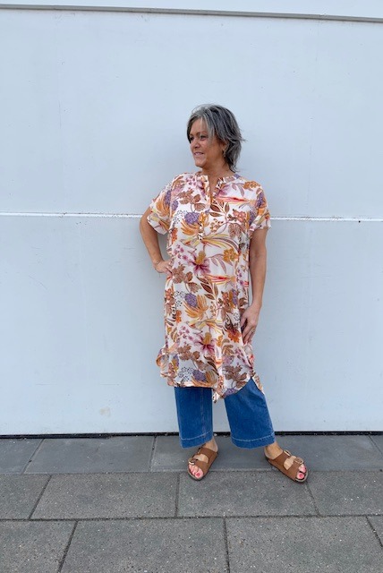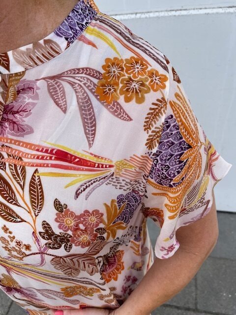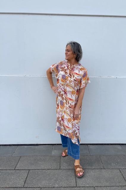 Flot silke kjole i et skønt print fra Peace Heart Joy. Kjolen har et fint lille ærme og går til midt på skinnebenet (alt efter din højde)