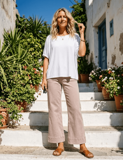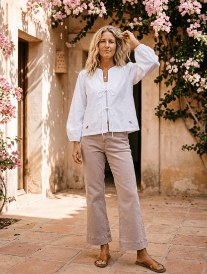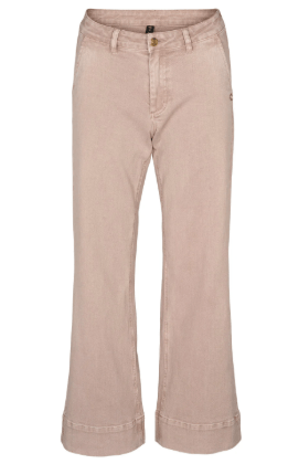 Malia Jeans er en super lækker jeans i en fin gammel rosa farve med vidde. Bukserne har mellemhøj talje og fast linning med bæltestropper, to sidelommer samt to baglommer. Benene afsluttes med en bred, påsyet kant forneden, som giver et markant og struktureret udtryk. Bukserne er med lynlås og en enkelt knap og er i en blød og lækker kvalitet.