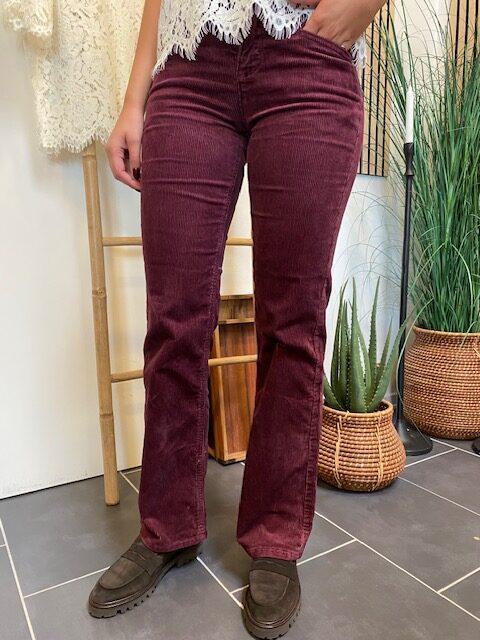 Red Button Bibette 10W Cord er et par moderne fløjlsbukser med en flatterende pasform i en flot bordeaux farve. Bukserne har high rise talje, regular fit og elegante flare legs, der skaber et stilrent og feminint udtryk. Det bløde fløjlsmateriale med stræk sikrer komfort hele dagen. De passer perfekt til både hverdags- og aftenbrug.