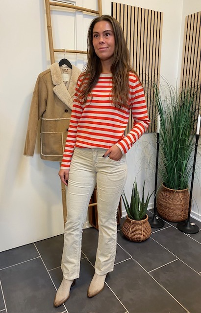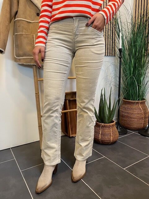 Lækker og moderigtig buks i offwhite fløjl fra Red Button. Buksen har flare forneden.