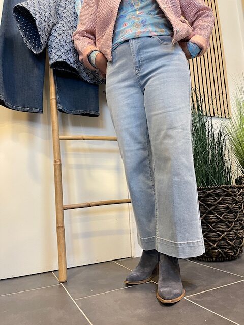 Smart jeans i en helt lys vask og med vidde fra Red Button. Denne jeans har EXTRA KORT benlængde og er en stumpebuks.