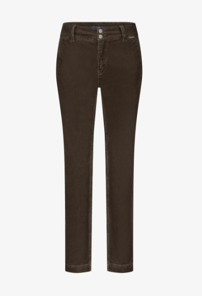 Lækker buks i brun fløjl fra Red Button. Bukserne er designet med fokus på både pasform og funktionalitet. Den elastiske linning giver maksimal komfort, mens det lette stretch sikrer, at bukserne følger kroppens bevægelser uden at stramme. Snittet er klassisk og flatterende, hvilket gør bukserne nemme at style til både hverdagsbrug og mere festlige lejligheder.