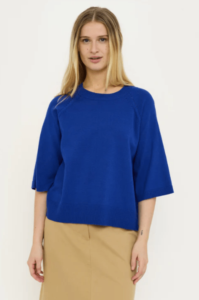 Soft Rebels strik i en flot koboltblå farve. Den har et fint 3/4 langt ærme og den er nem at style til både bukser og til en nederdel.
