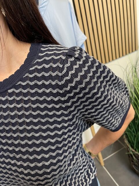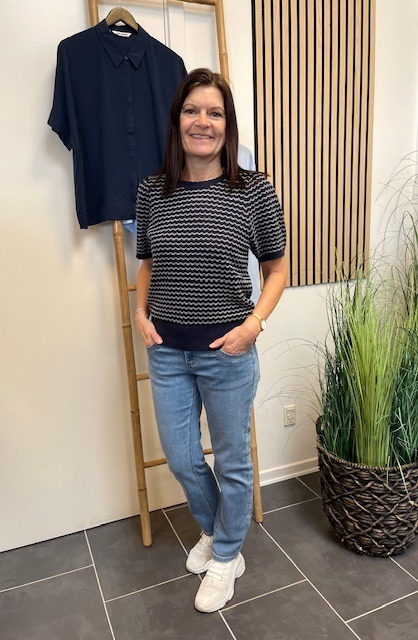 Strikken har en let og blød kvalitet, der gør den behagelig at have på og den er nem at style til både bukser og til en nederdel.
