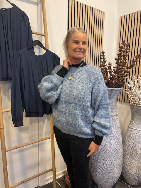 Lækker strik i blå farver fra Sorbet. Style den til både bukser og til nederdel.