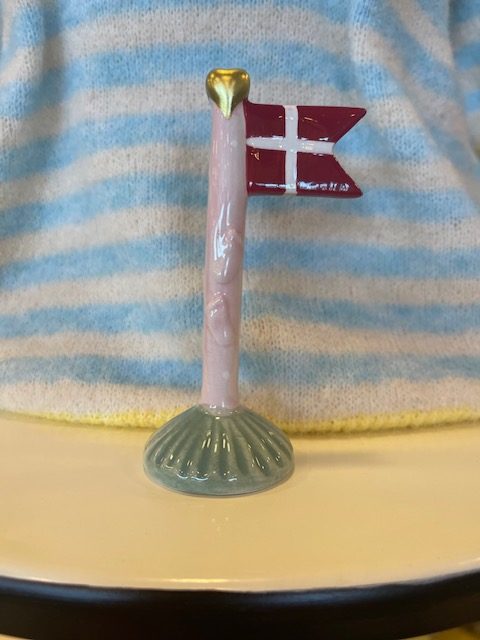 Sødt lille keramik flag med babyfødder. Stangen er lyserød og foden er grøn. Alletiders gaveidé.