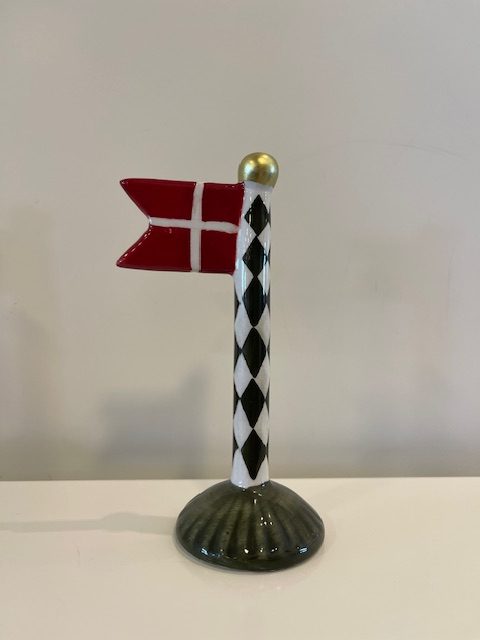 Fint lille keramik flag i grøn/hvid harlekin. En alletiders gaveidé.