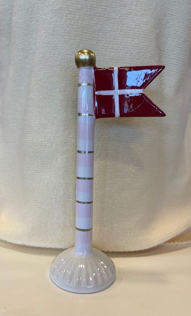 Stort Keramikflag fra Speedtsberg. Stangen er stribet i creme/rosa/guld og foden er beige. Alletiders gaveidé.
