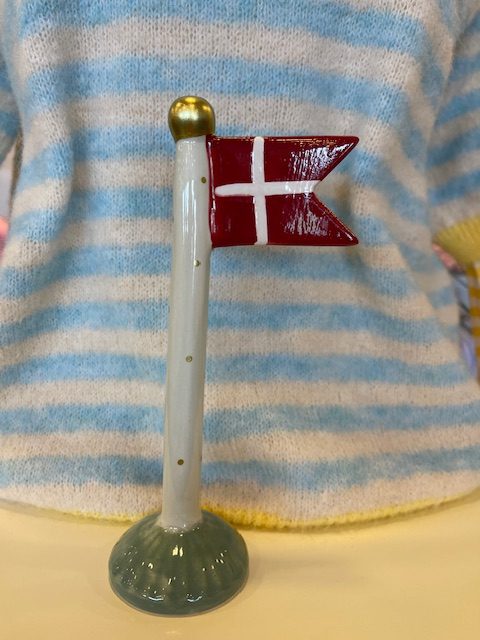 Stort keramik flag med cremefarvet stang med prikker og med grøn fod. En alletiders gaveidé.