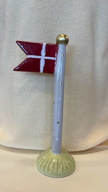 Stort keramik bordflag fra Speedtsberg. Stangen er cremefarvet med prikker og foden er limegrøn.