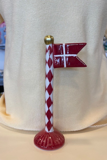 Stort keramik flag i rød/hvid harlekin tern fra Speedtsberg.