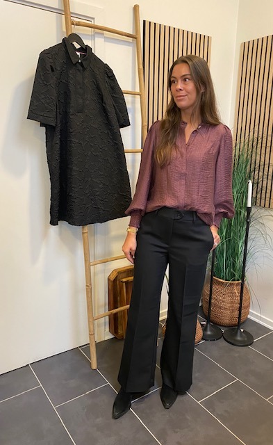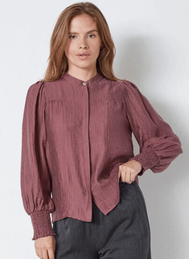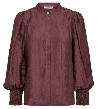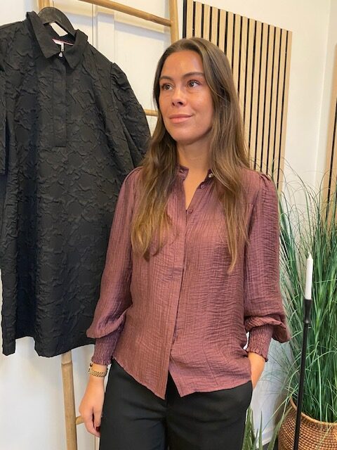 Smuk melon farvet skjorte fra Co’Couture. Den er lavet med høj hals og skjulte knaplukninger. Øverst har skjorten en synlig unik guldknap, som tilføjer et feminint præg til dit outfit. Skjorten er nem at style til både hverdag og til fest.