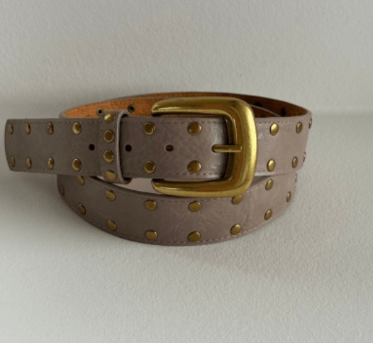 Lækkert nougat farvet bælte med messing farvet nitter og spænde fra Three M.