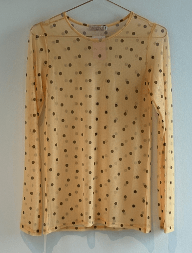 Moderigtig gul mesh med prikker fra Three M. Den er nem at style under alt.