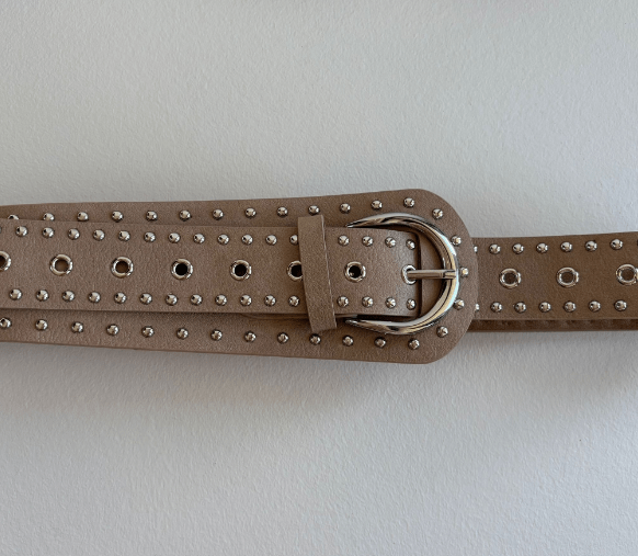 Moderigtigt bredt nougat farvet bælte med nitter fra Three M.