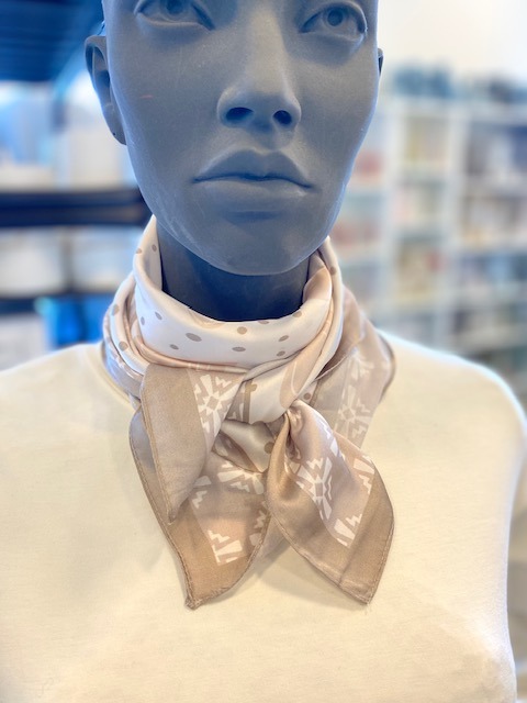 Fint og moderigtigt tørklæde i beige/creme fra Three M.