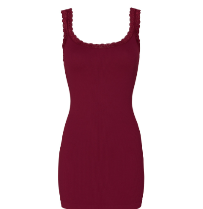 Klassisk blondetop i plus size i bordeaux fra Tim & Simonsen.
