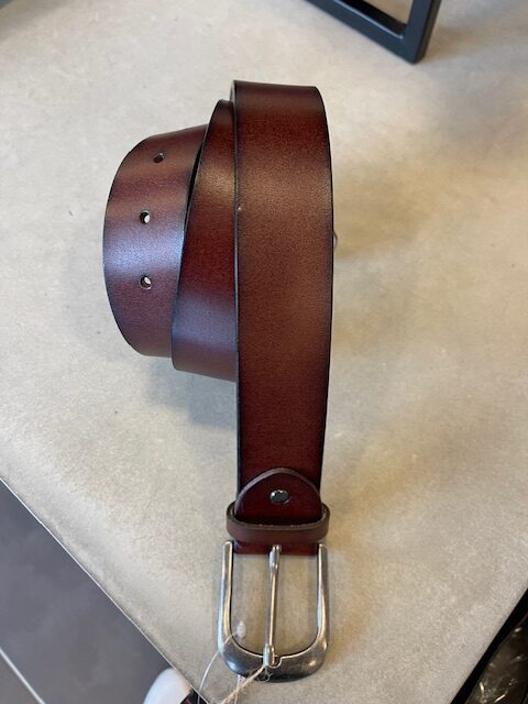 Klassisk brunt bælte i skind med et flot spænde i messing.