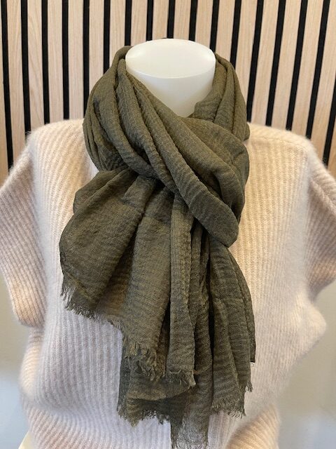 Skønt oliven farvet tørklæde i en let og luftig kvalitet fra Vanting.